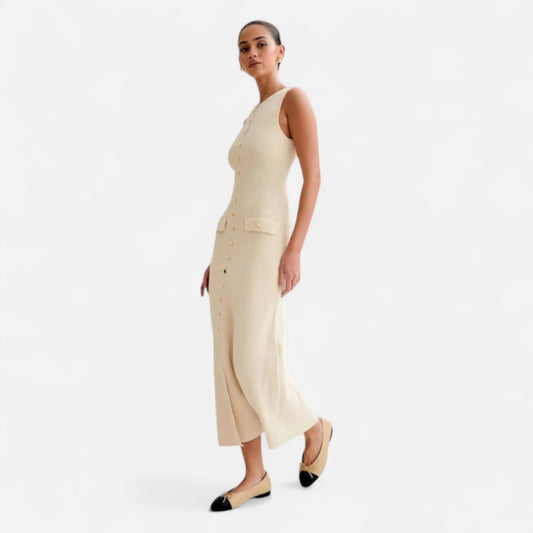 Vivellamode | Chic Old Money Sleeveless Maxi Dress – Elegant Buttoned Down Design